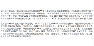 算法指标围绕定位精度、运行实时性、硬件 / 空间适配、容错稳定性四大核心维度设计,所有数值均基于 50m×50m×10m 工业车间 / 仓储场景实测,指标表现完全匹配工业人员、AGV、移动设备的定位需求,具体量化指标如下: