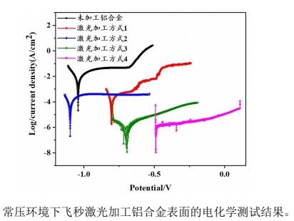 本成果利用飞秒激光与物质相互作用过程中产生的瞬时极端温度和压力条件,实现了对金属材料表面的改形和控性进而获得长效自防腐的新奇功效,有效避免了传统化学涂层防腐过程中存在易脱落、增加负载和环境污染等问题。该技术不仅实现了金属材料表面的自主防腐功能,同时展现出较为持久的超疏水特性。基于这两种性能的相互结合,极大地提高了金属表面在复杂苛刻环境中的抗腐和防污能力